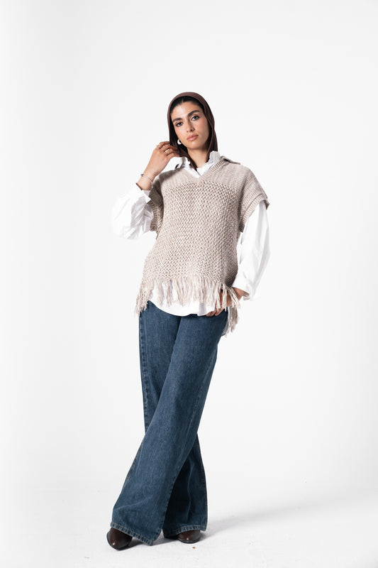 Sold outFringes Knit Vest in Cafe
