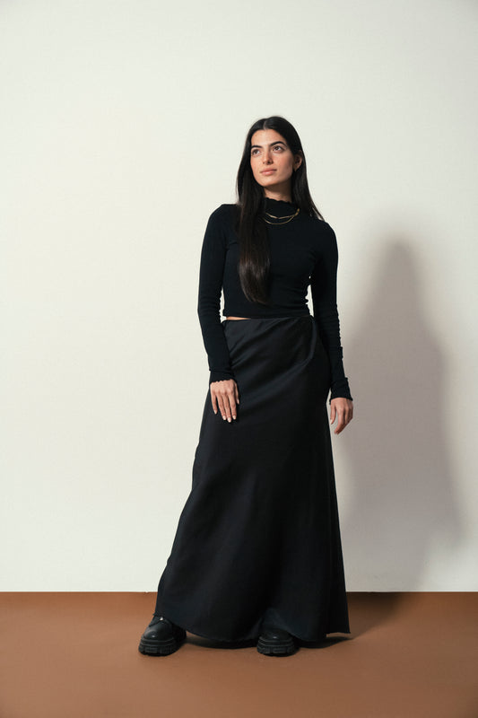 Sold outLuxe Satin Maxi Skirt in Black