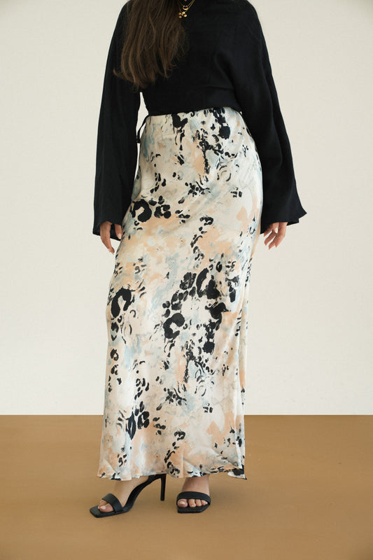 Sold outAbstract Print Satin Skirt