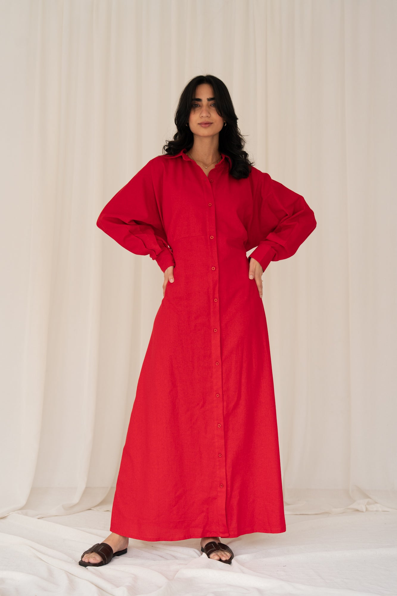 - Long shirt dress made from pure linen, offering a breathable and elegant feel.