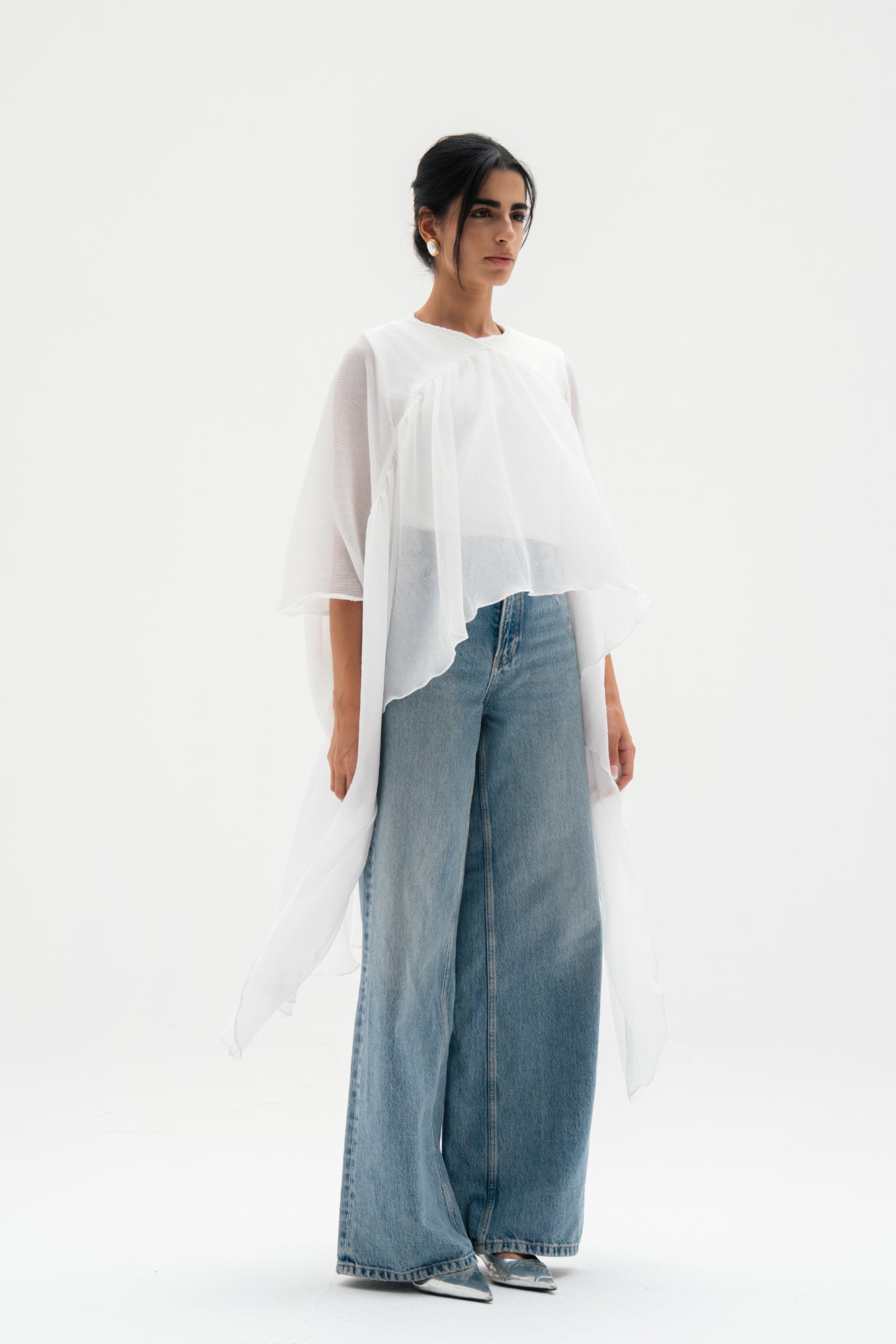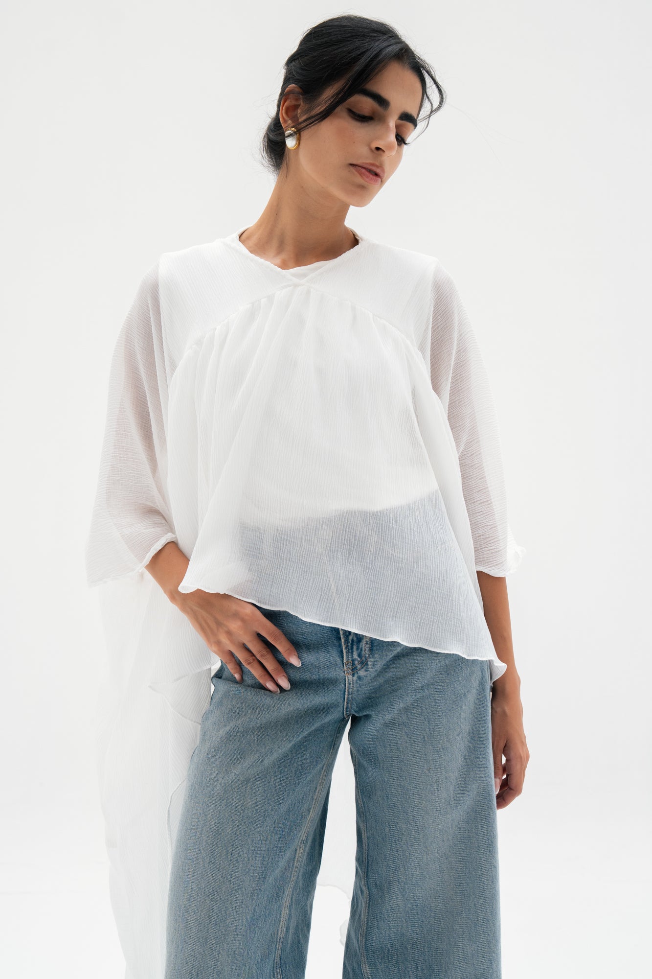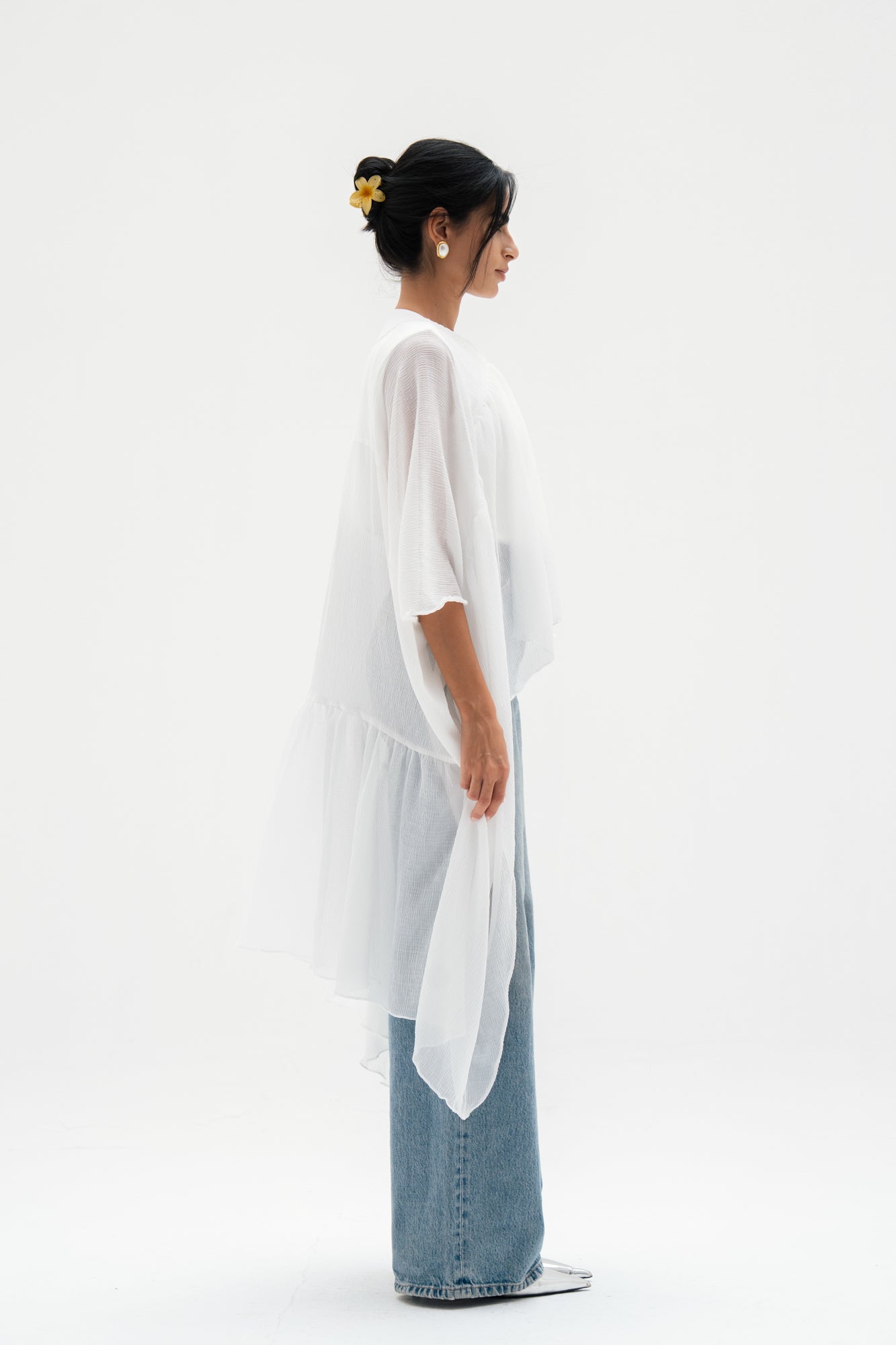 Oversized asymmetric linen shirt with a relaxed fit, closed with front buttons for effortless styling. Designed with a modern twist on a timeless silhouette, it pairs comfort with understated elegance.