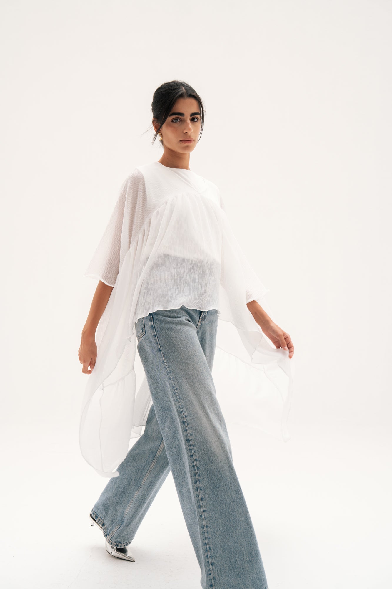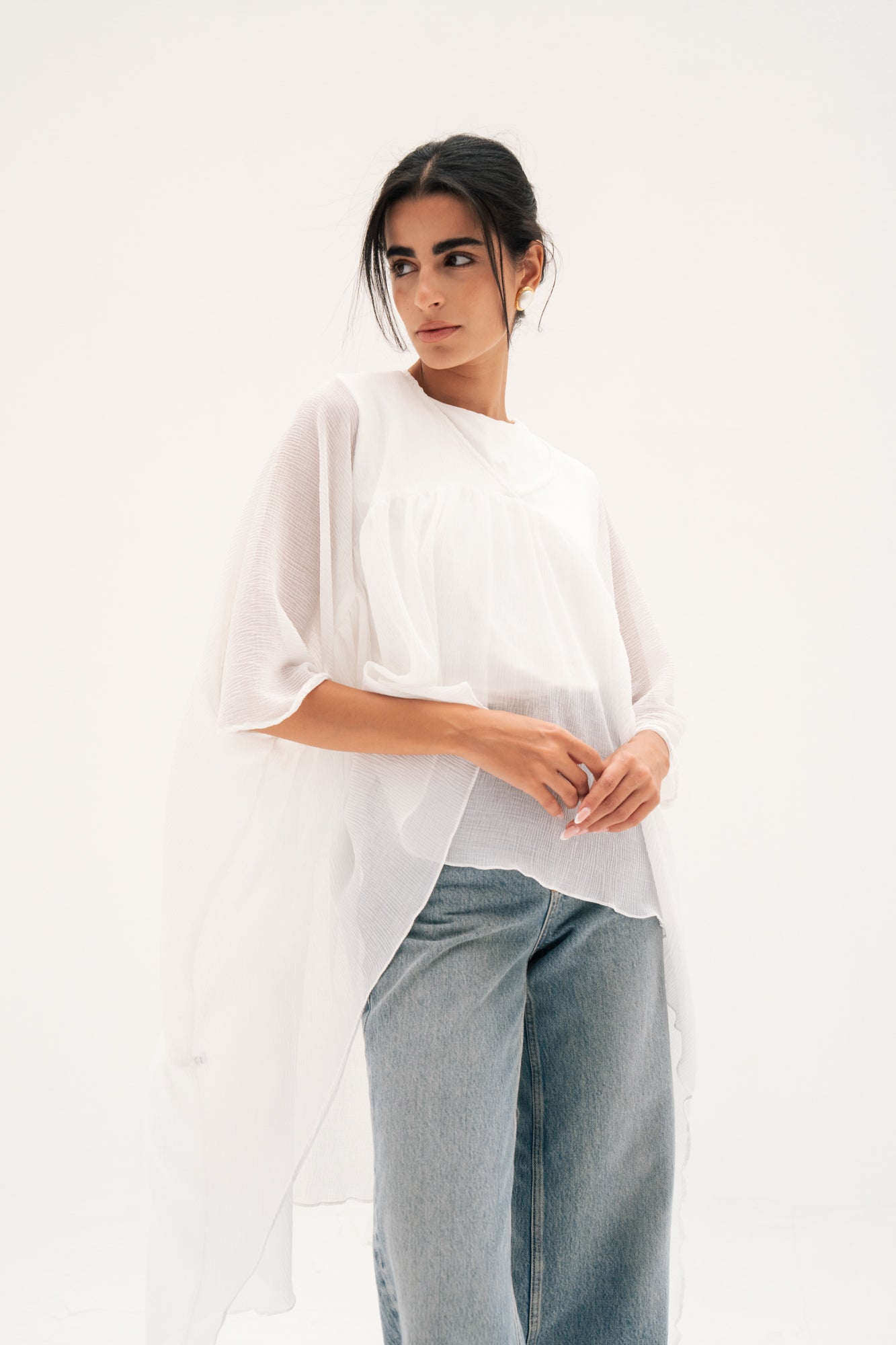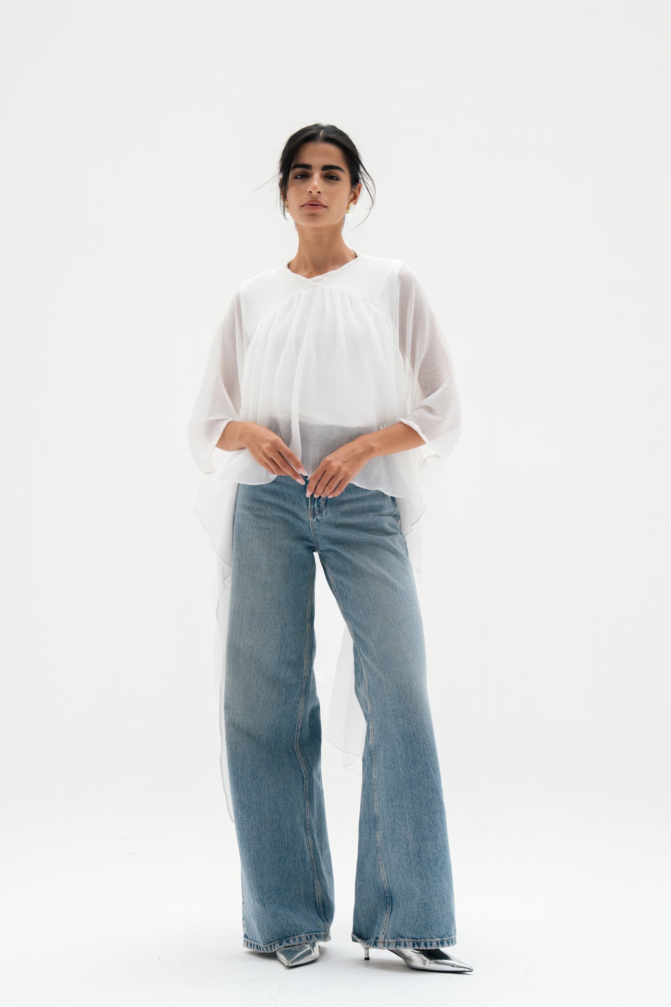Oversized asymmetric linen shirt with a relaxed fit, closed with front buttons for effortless styling. Designed with a modern twist on a timeless silhouette, it pairs comfort with understated elegance.