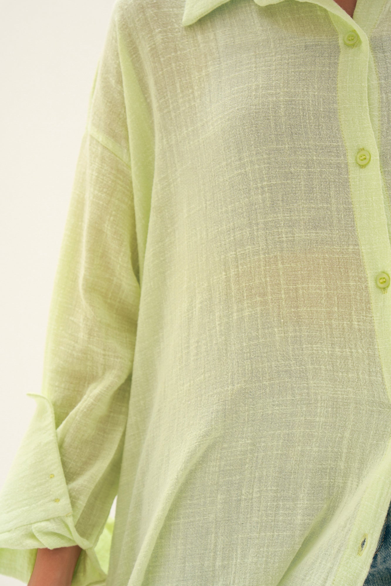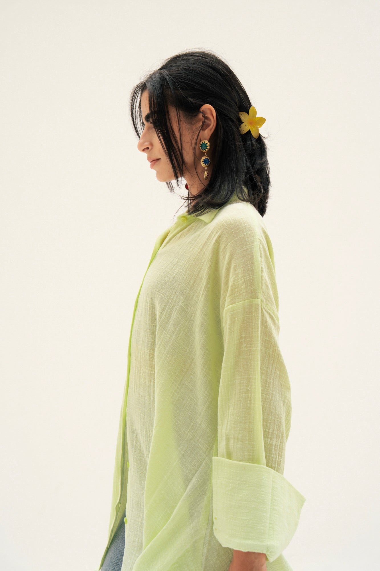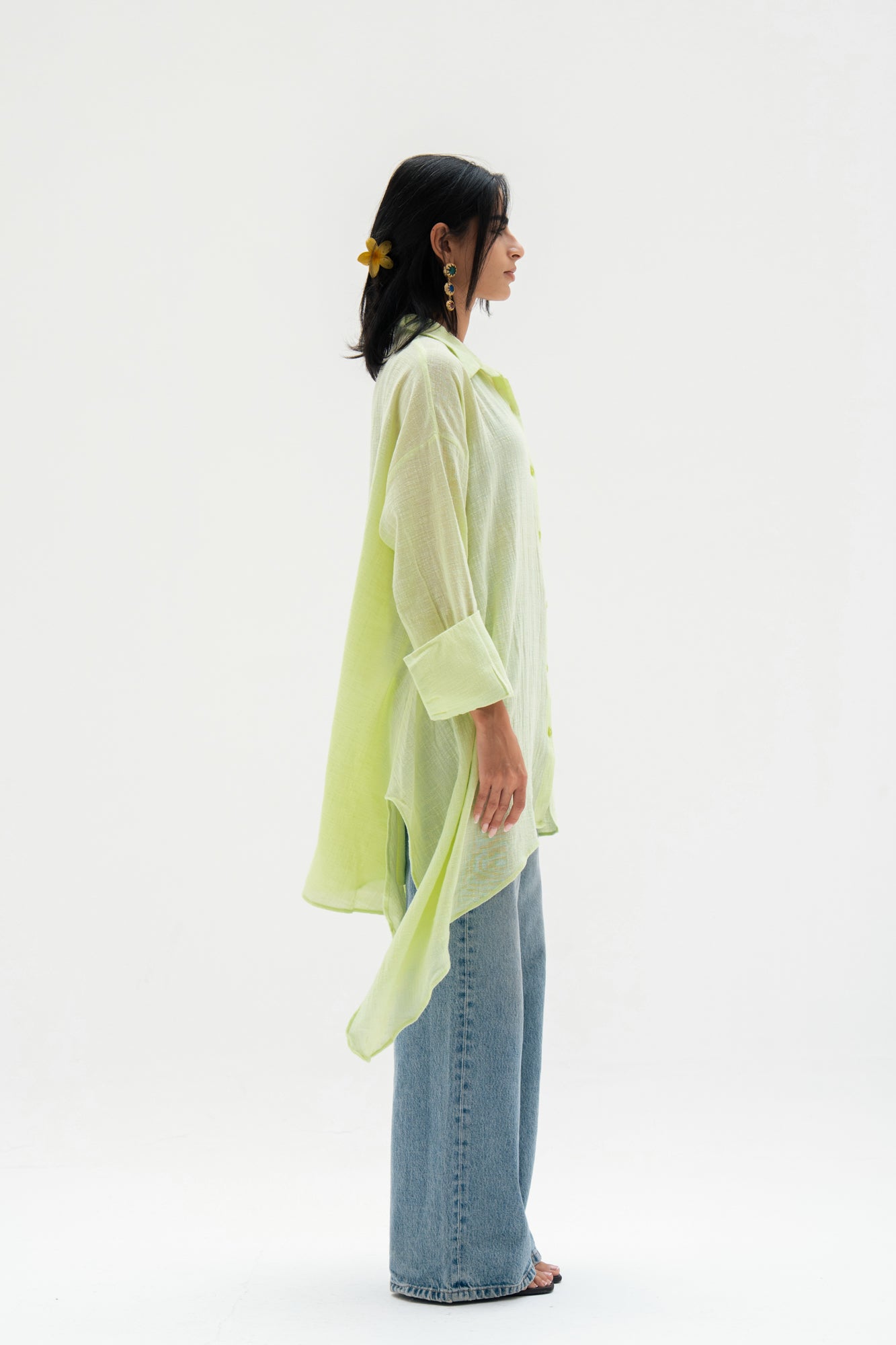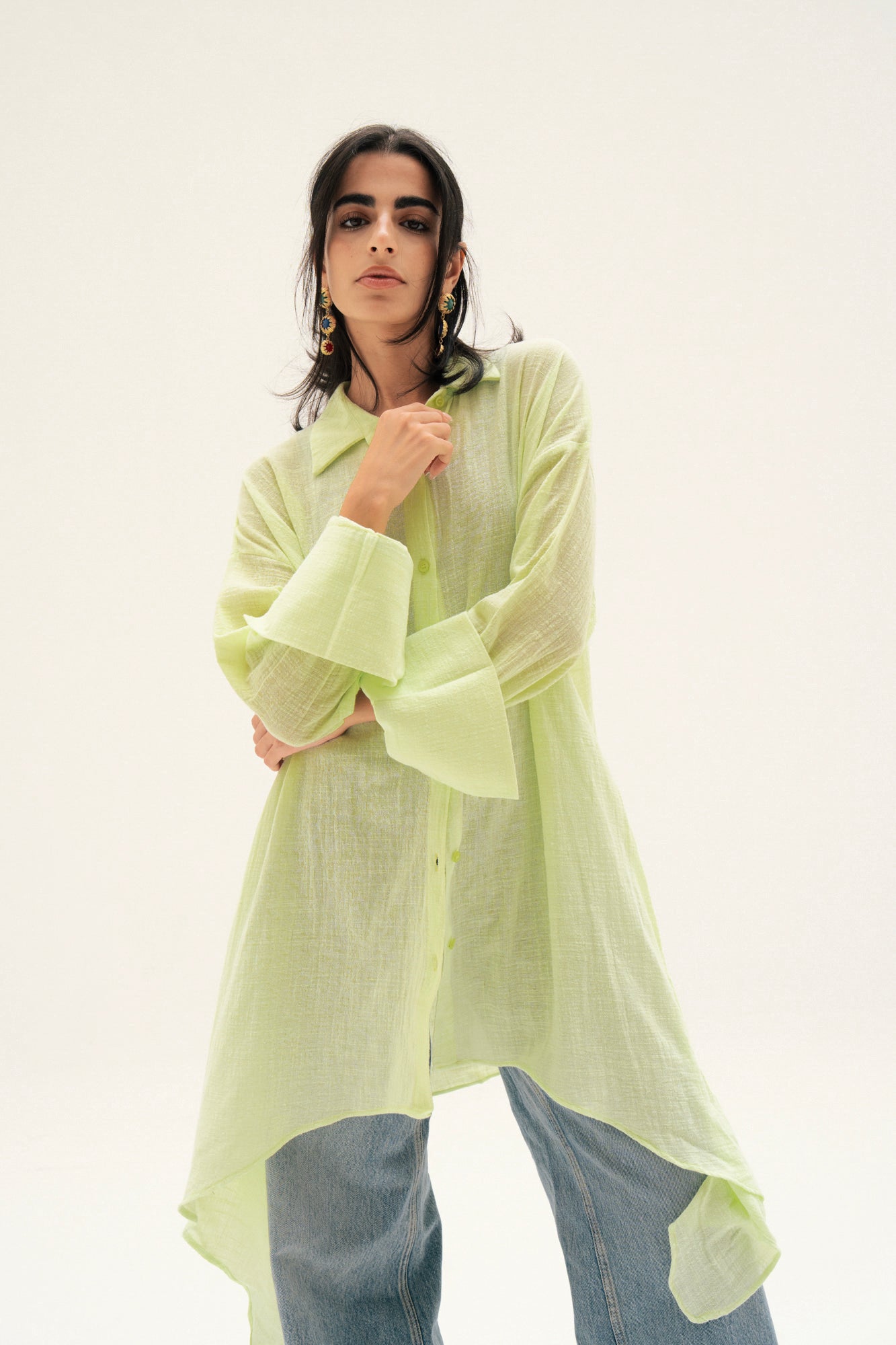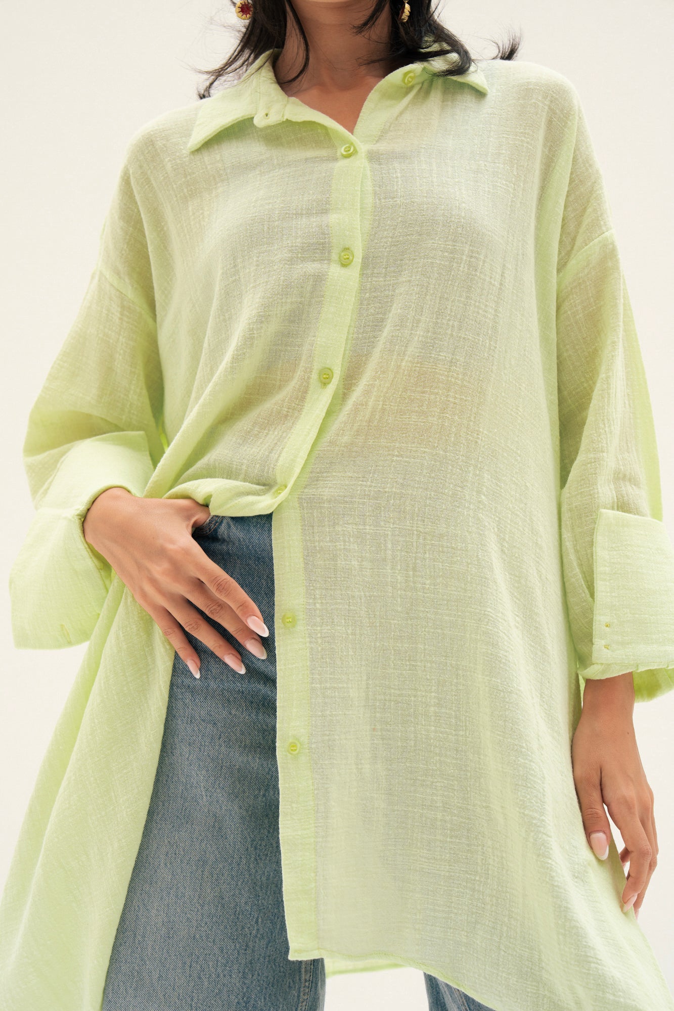 Oversized asymmetric linen shirt with a relaxed fit, closed with front buttons for effortless styling. Designed with a modern twist on a timeless silhouette, it pairs comfort with understated elegance.