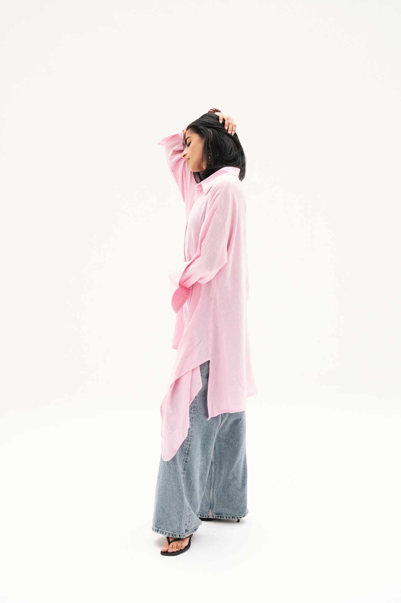 Asymmetric Linen Shirt in Pink