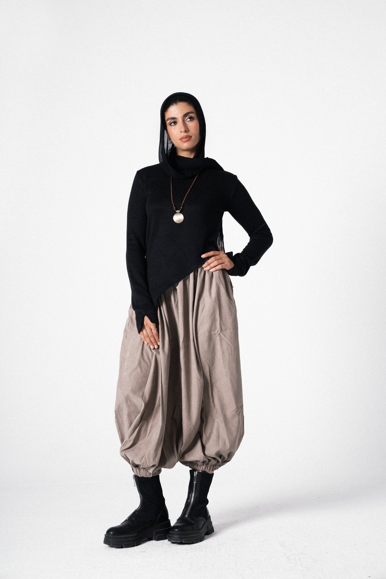 Statement comfort with effortless shape. These balloon pants are crafted from soft, breathable fabric and designed with a voluminous leg that tapers gently at the hem for a sculpted, modern silhouette. A relaxed essential that brings ease and style to everyday looks.