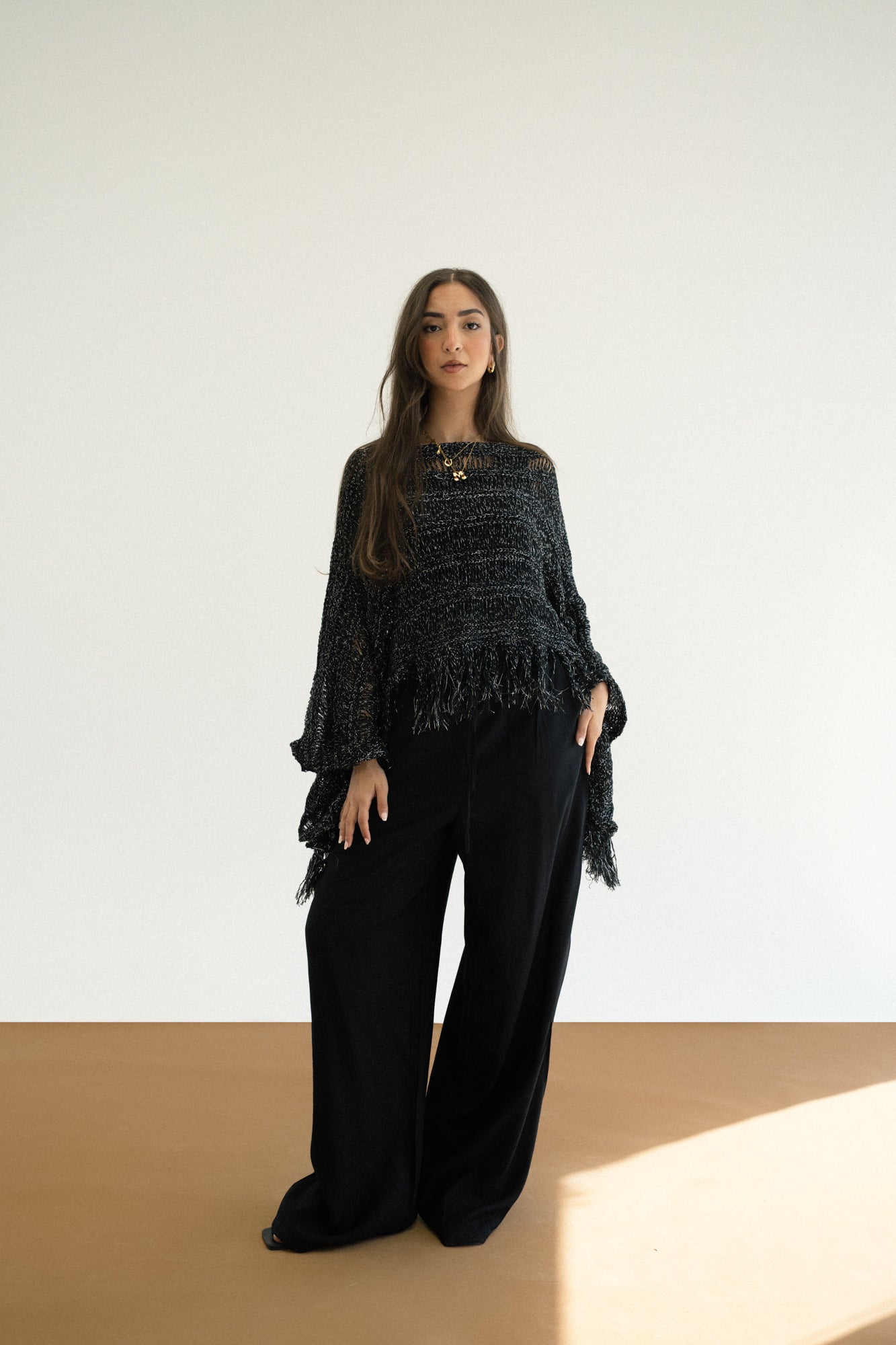 - Crafted for effortless layering, this airy piece adds movement and sophistication to any look—whether styled over a dress or paired with trousers.