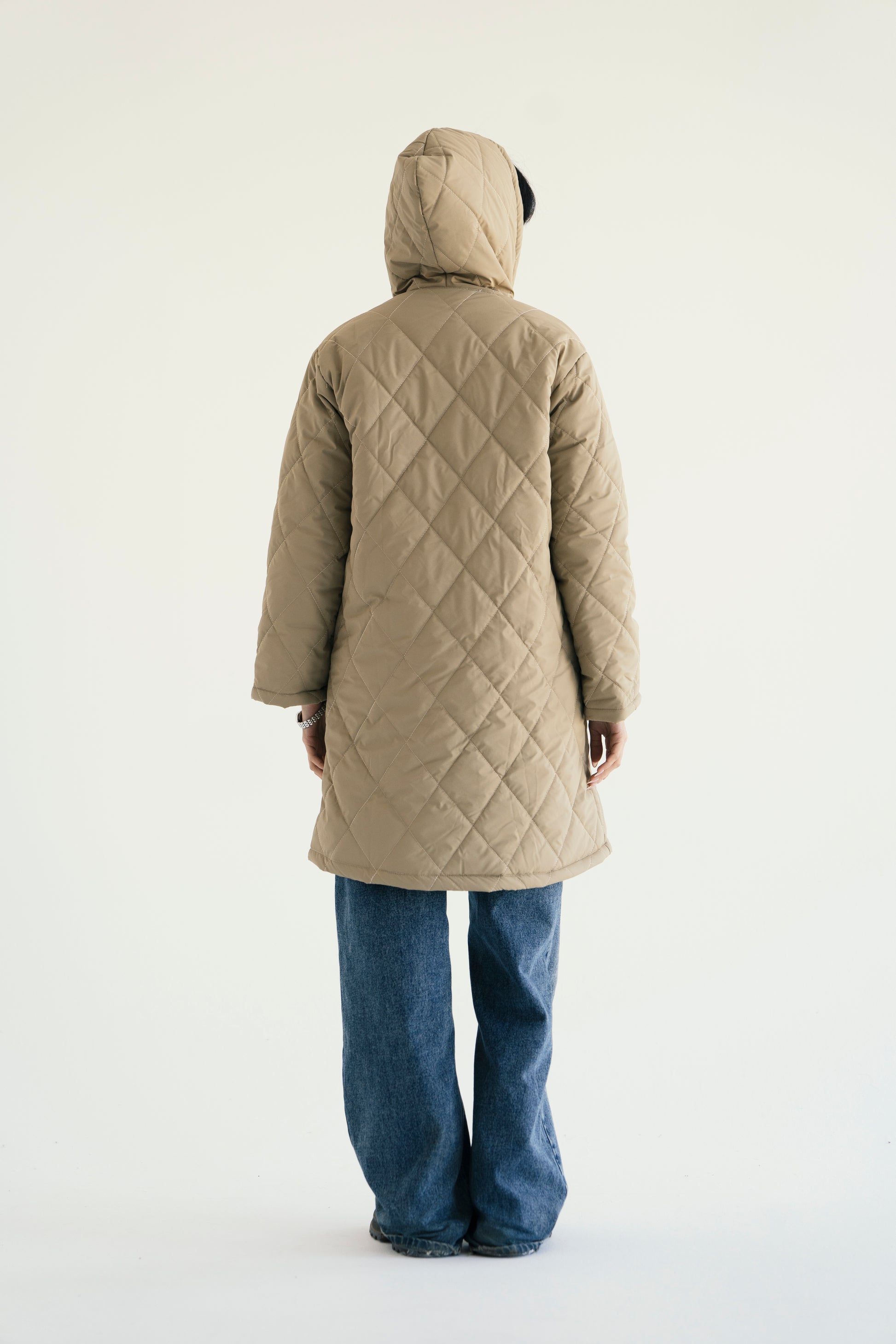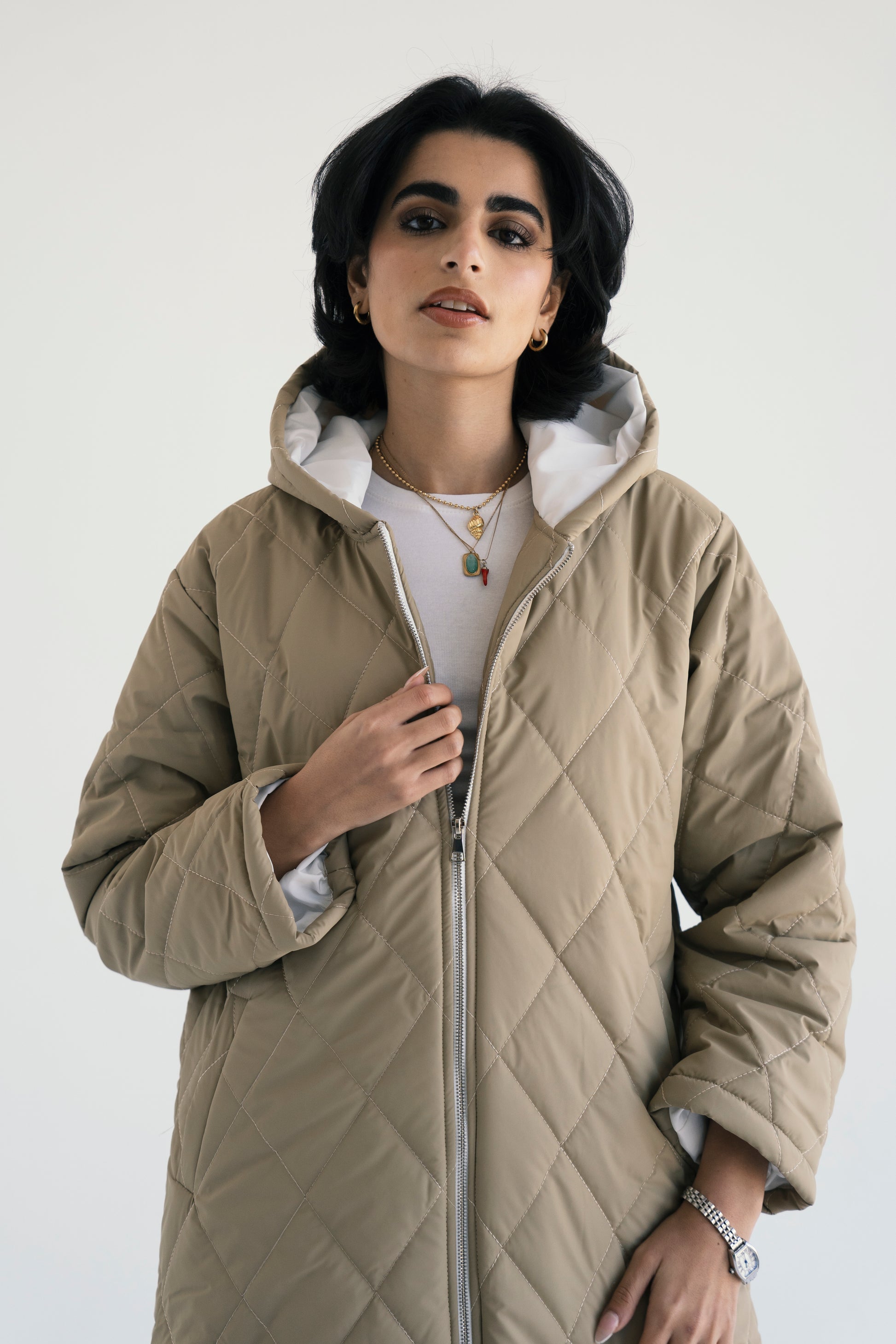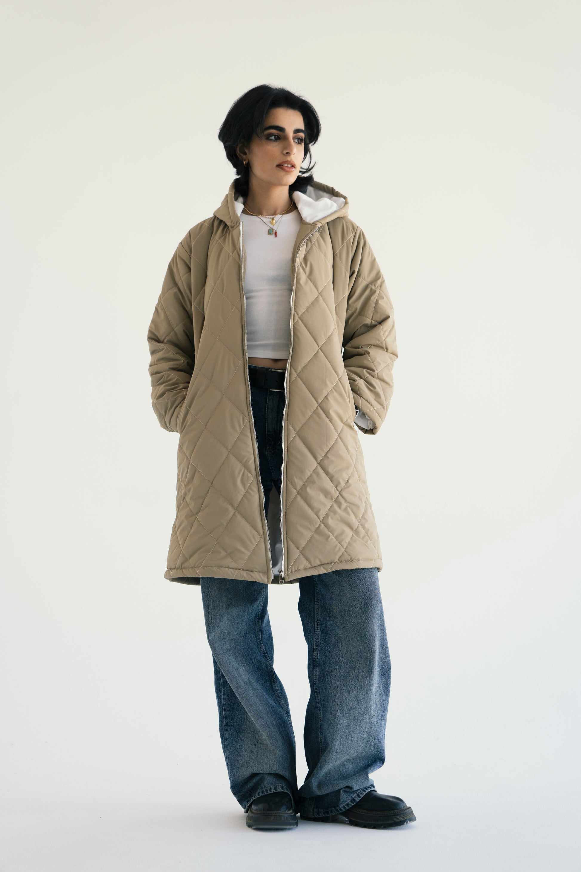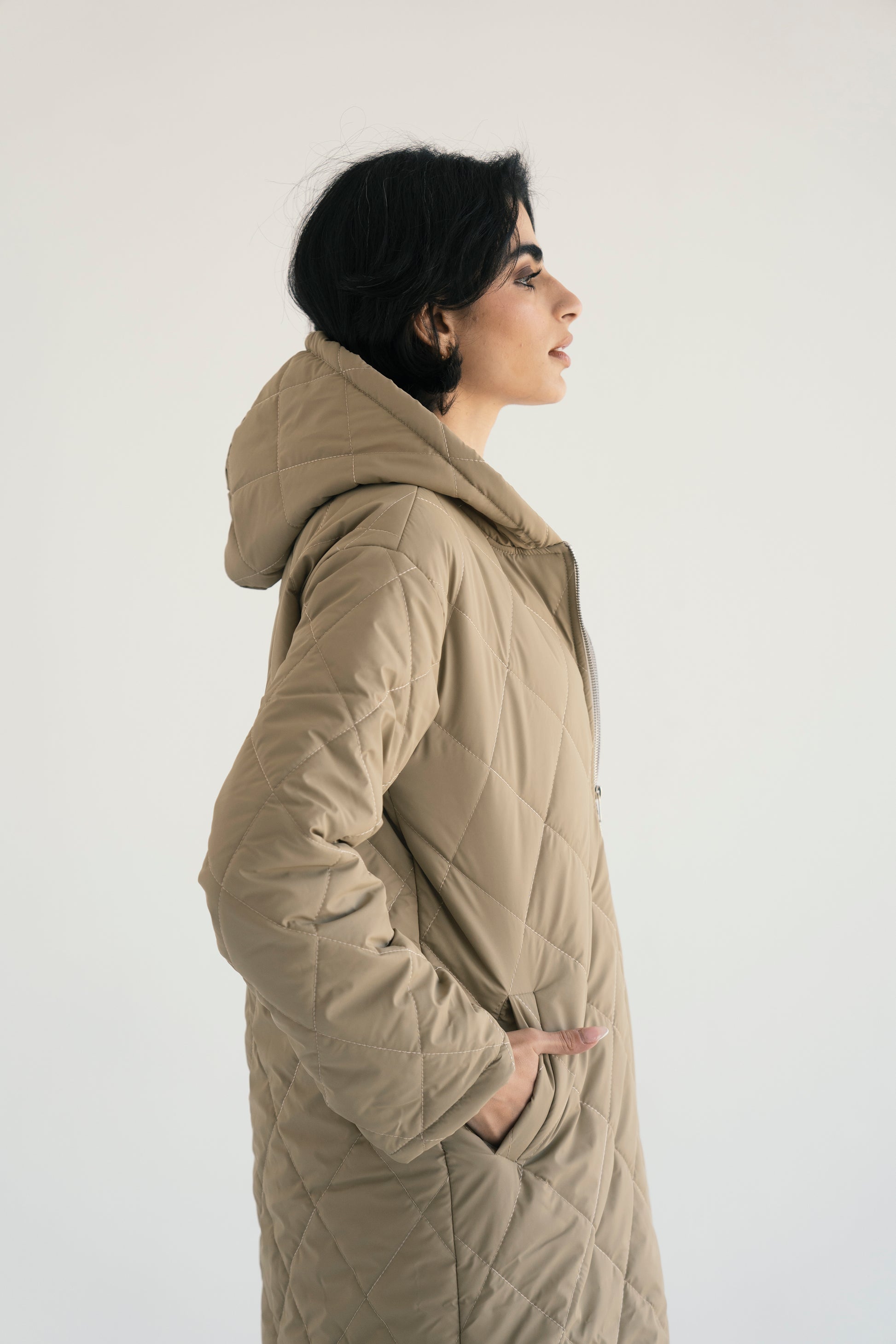 - Long puffer jacket in woven fabric with a relaxed hood and a zip-down front, fully lined for extra warmth. Welt front pockets add both style and functionality, making this a practical option for cooler weather.