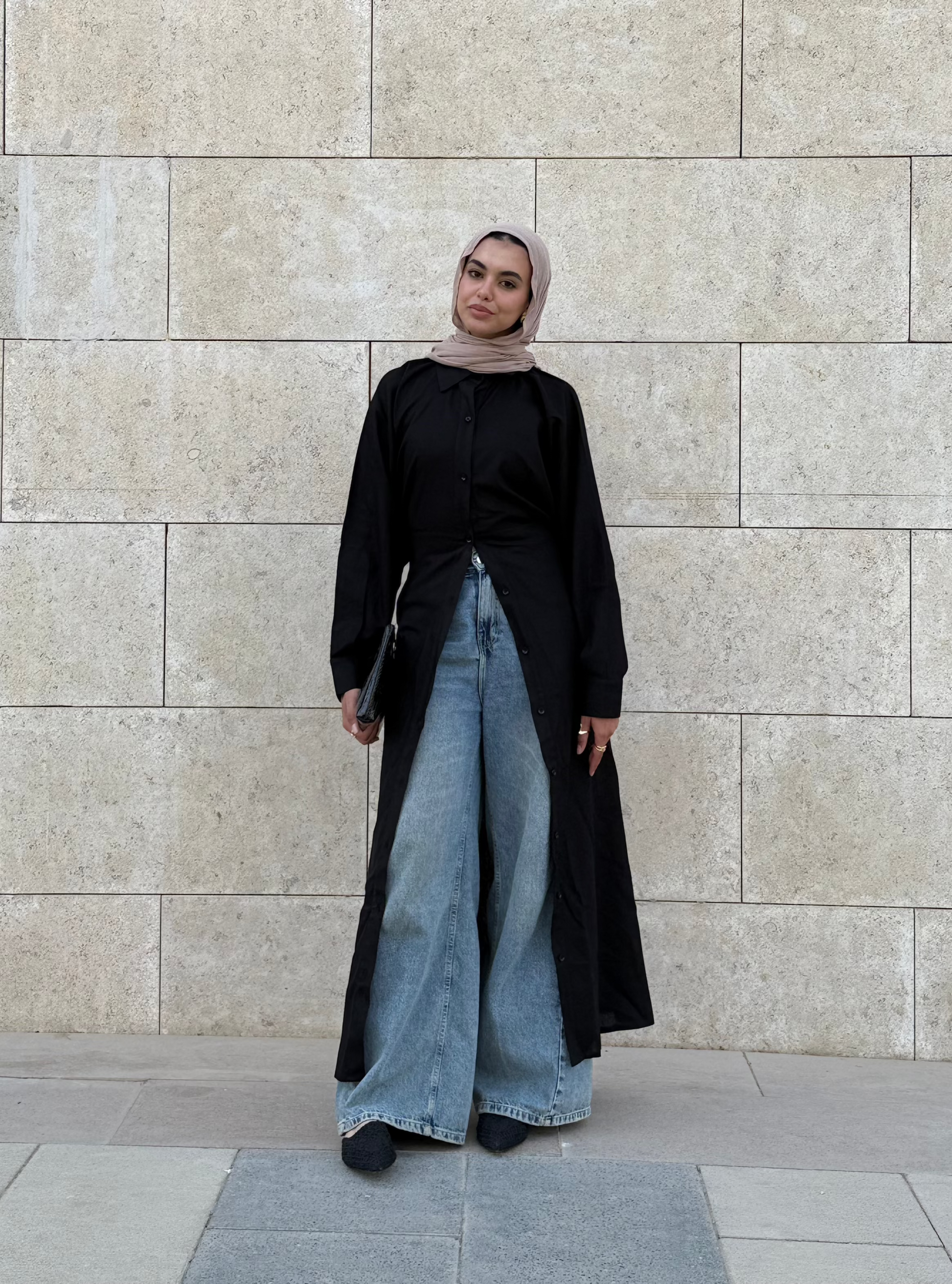 - Long shirt dress made from pure linen, offering a breathable and elegant feel.
