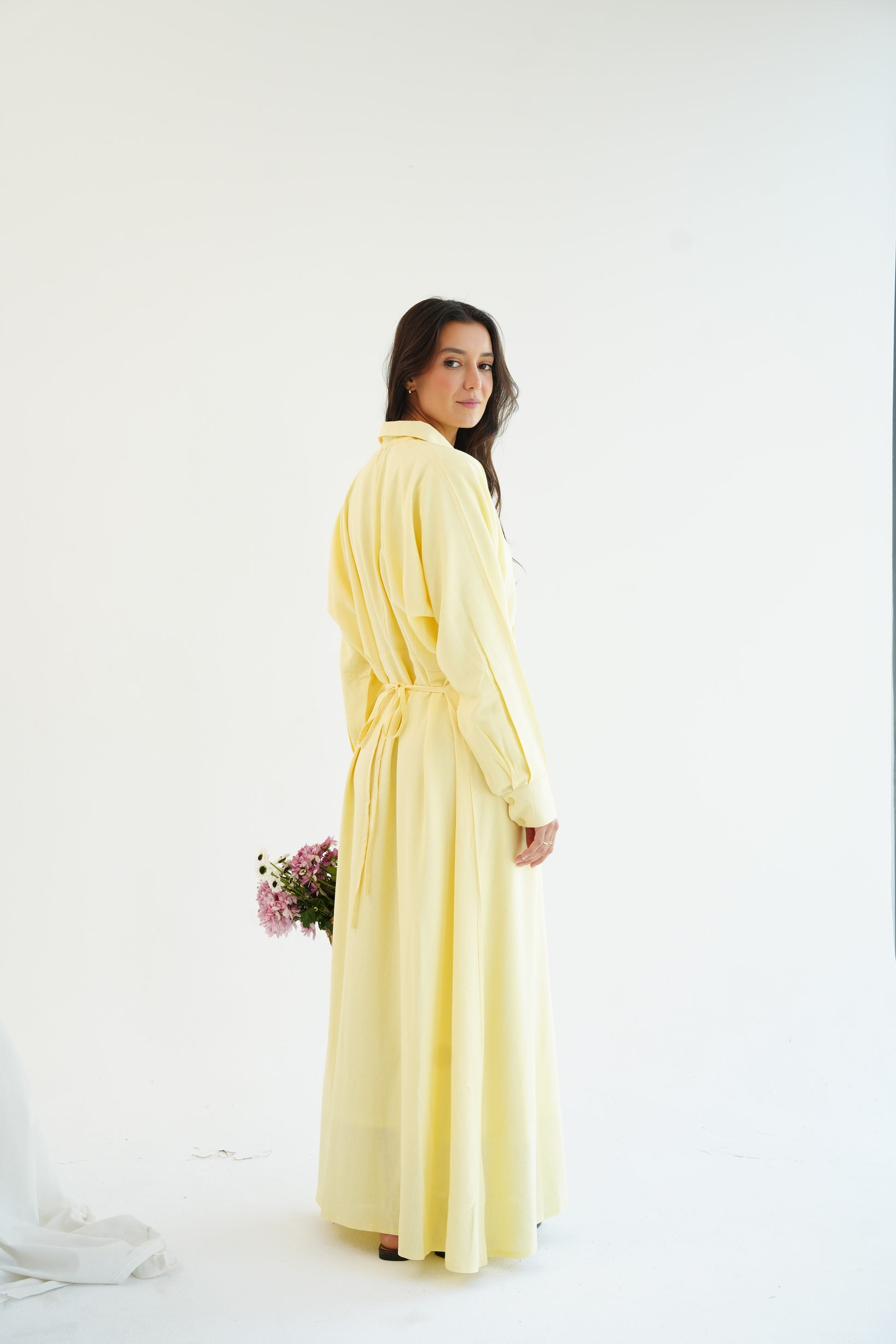Linen Flow Shirt Dress in Butter Yellow