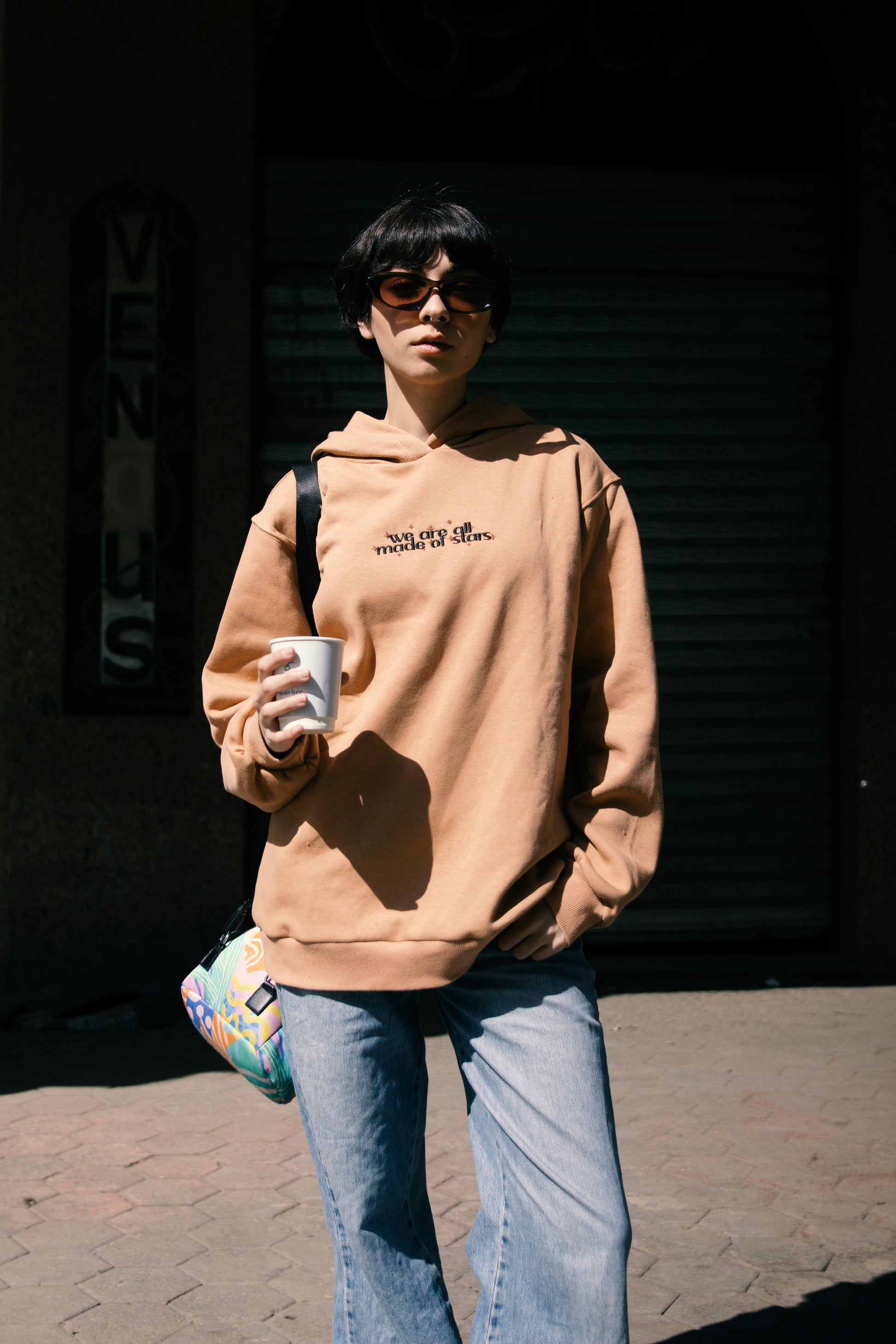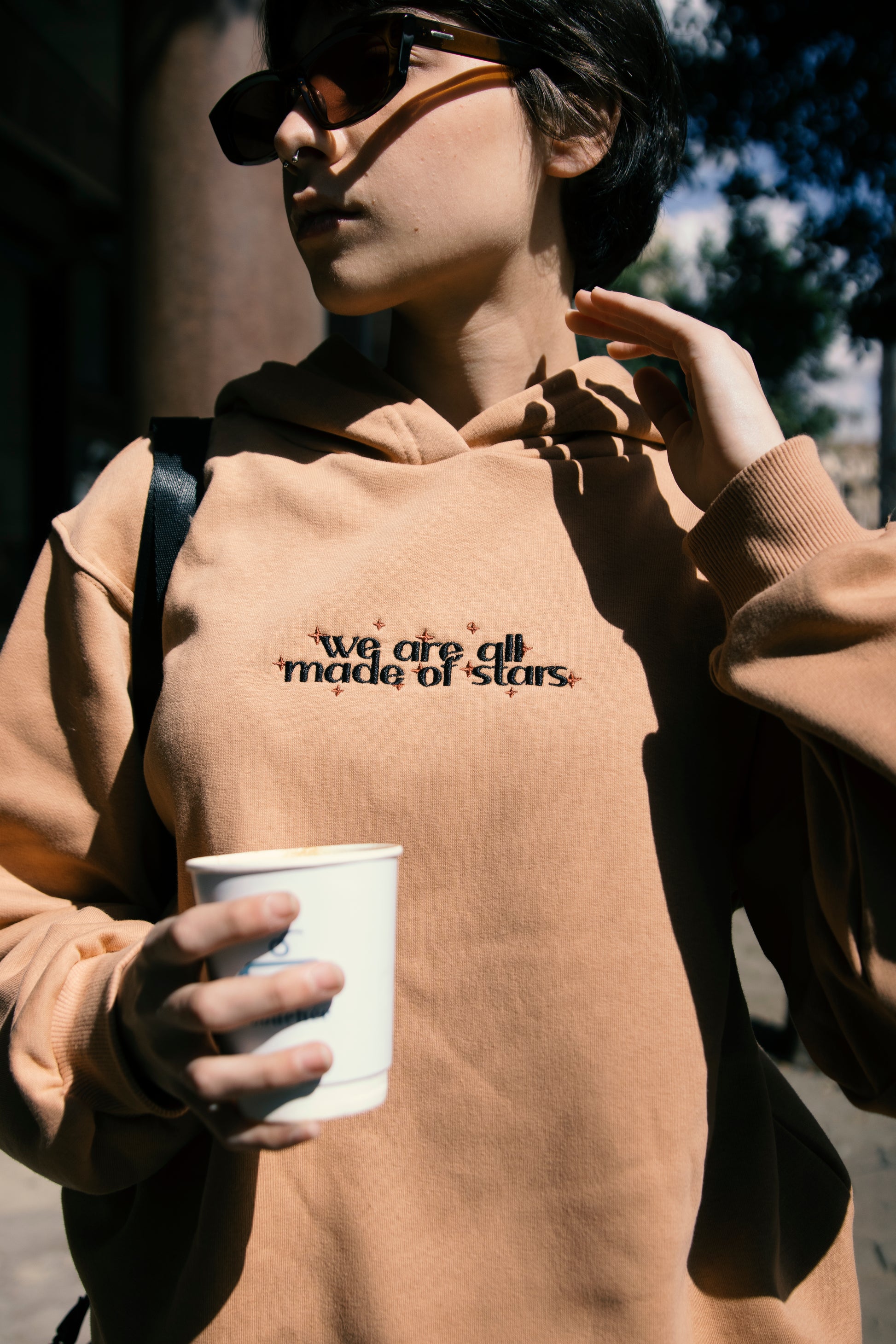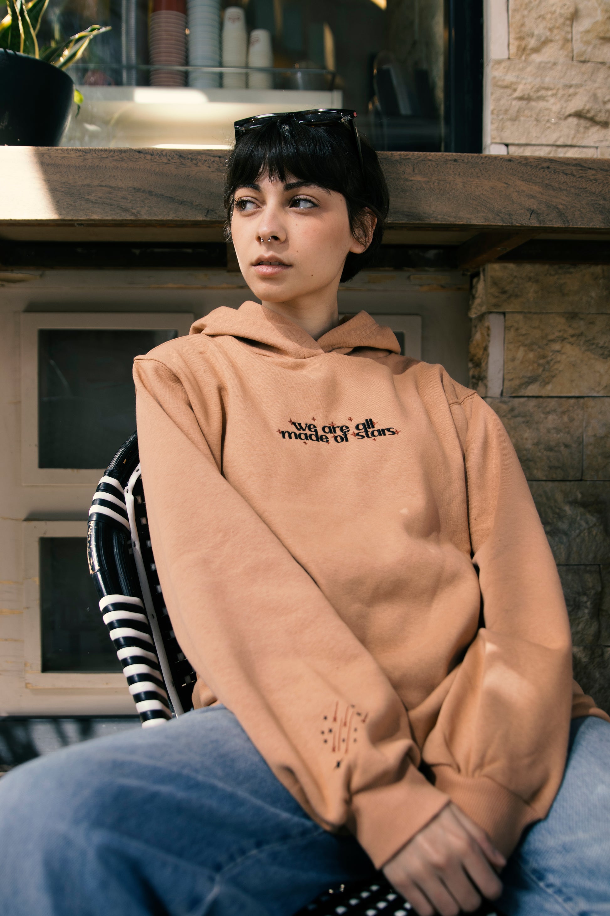 "Made Of Stars" Embroidered Hoodie in Peach
